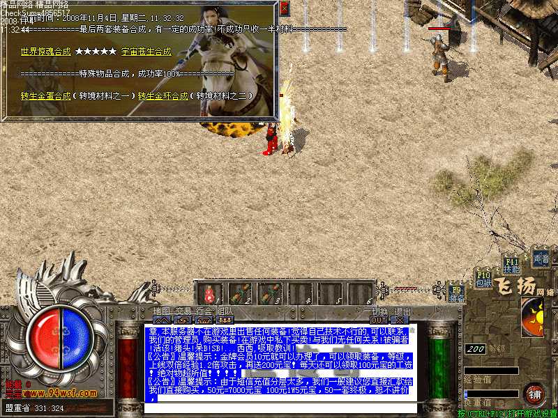 温馨提示:老区只保留在90级以上的号,每次合区将把90以下的小号自动清除!请大家不要把装备放小号!也不要在安全区挂小号!一个IP建立的号,绝对不可以超过5个,不然系统将自动封了IP,谢谢合作!