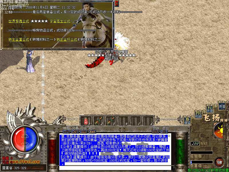 出现大量骗子!专骗新人!有低价出售:诛仙神魔剑,2.5倍攻击勋章,本服务器不在游戏里出售任何装备!觉得自己技术不行的,可以联系,我们的管理员,购买装备!在游戏中私下买卖!与我们无任何关系!被骗者!活该!猪头!呆B!SB!...西西,吸取教训!