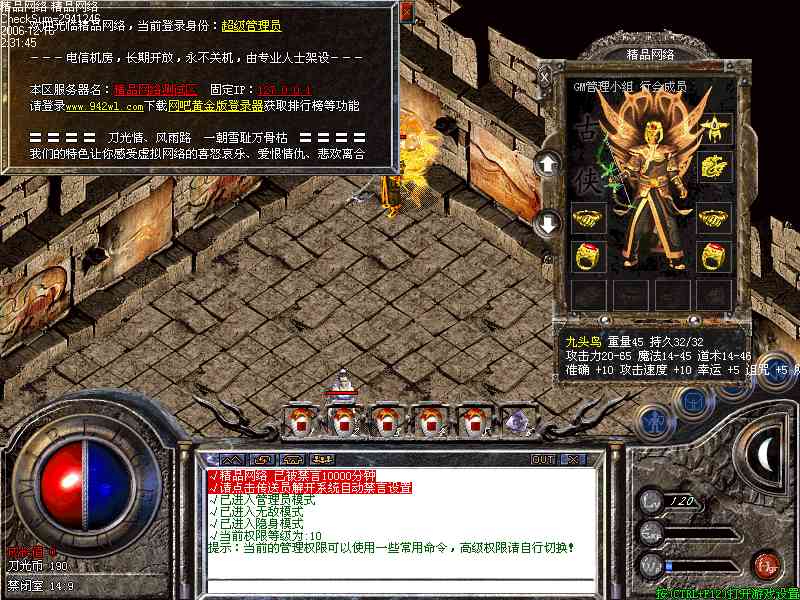 新加屠城,白虎套装。修改爆率装备更容易打。