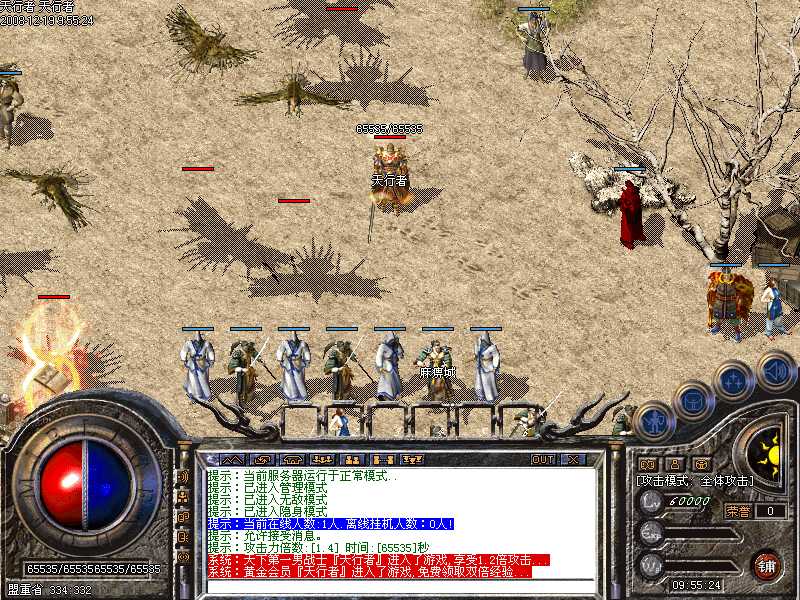 √.加入招怪大使,打死土城安全区神鹰,进入神秘地图,挑战招怪大使,获得大量元宝并红字公告提示。