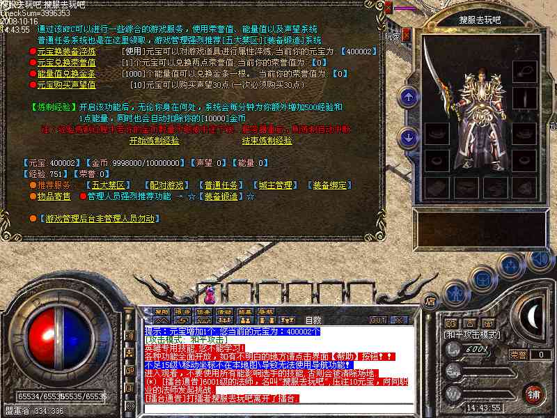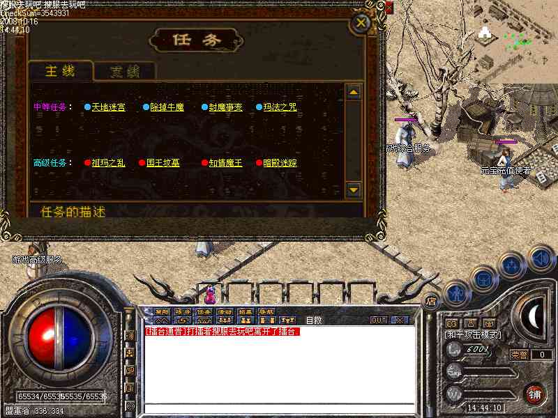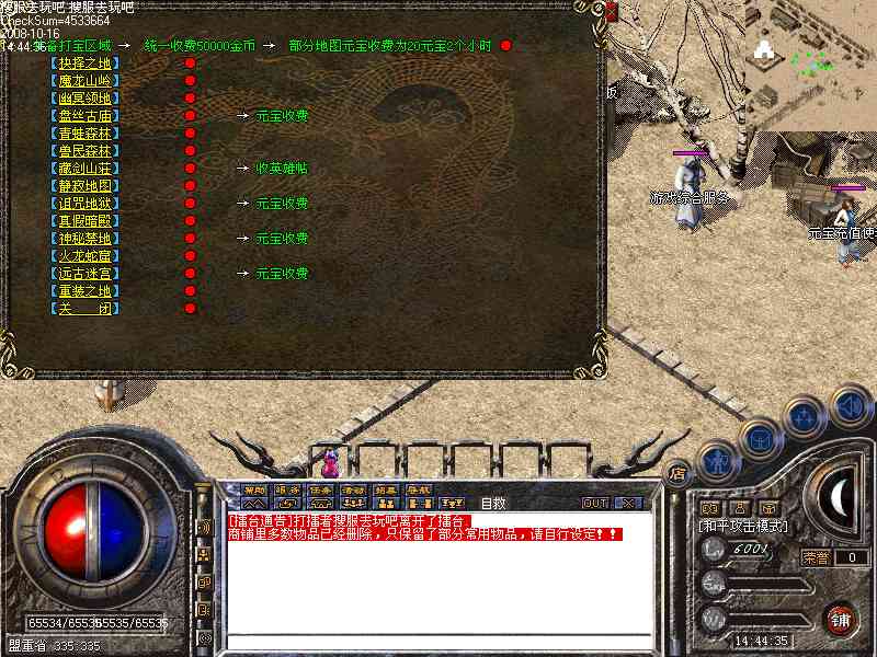 【游戏服务功能】:取消了盟重安全区的其他NPC,整合部分NPC功能到里面,方便玩家点击,节约服务器资源。