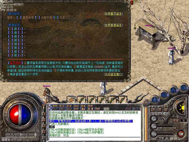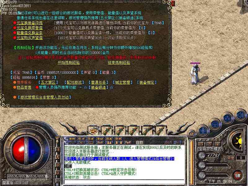 【游戏服务功能】:取消了盟重安全区的其他NPC,整合部分NPC功能到里面,方便玩家点击,节约服务器资源。
