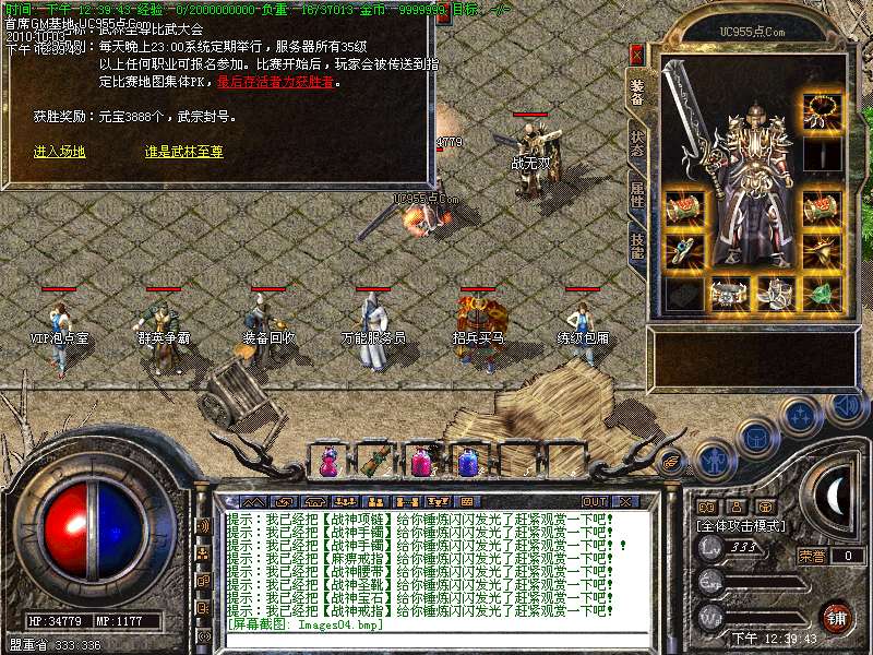土城药店每小时系统自动刷出必暴元宝的怪物!对本服务器有任何不明白的地方,请打“@帮助”命令,了解服务器的综合问题!