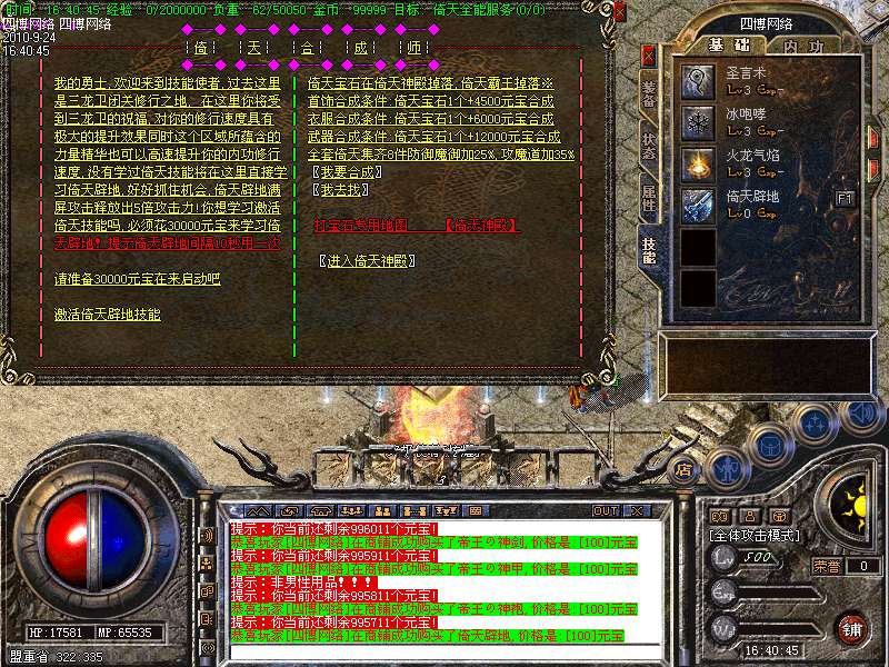 [253]全新技能闪亮登场倚天辟地技能满屏2.5倍攻击可以在元宝商铺花30000元宝购买。