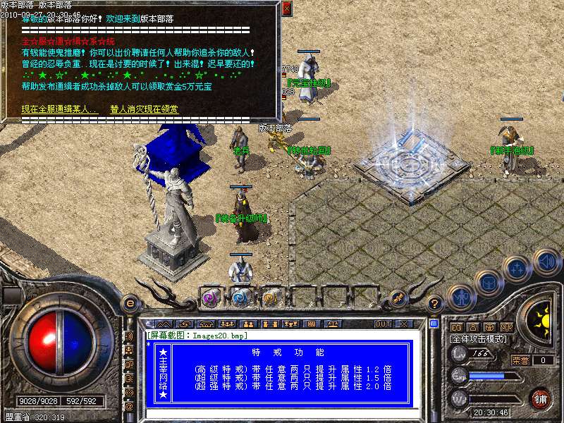 新 区 开 放 后 第 二 天 攻 城,奖 励 沙 城 主 <2000万 元 宝> +<轩 辕 两 套>。