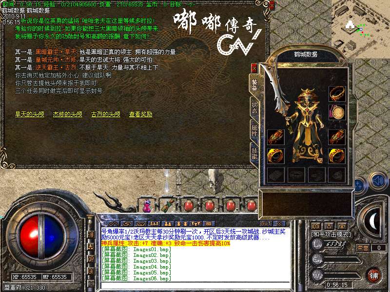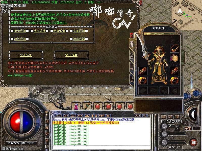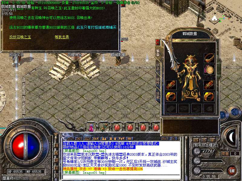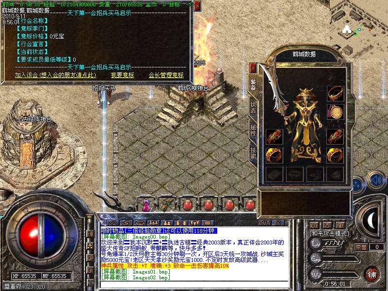 [253]号角爆率1/2沃玛教主每30分钟刷一次,开区后3天统一攻城战.沙城主奖励5000元宝!老区天天拿沙奖励元宝1000.不定时发放高级武器....