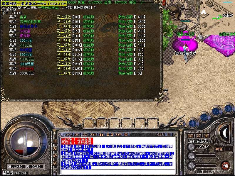 【更新】财富劫阵,BOSS爆出财富神石可以启动财富阵,启动的同时可以随机获得元宝!!满188层土药将会出现大量的元宝!!具体请查看土城财富劫阵NPC!!