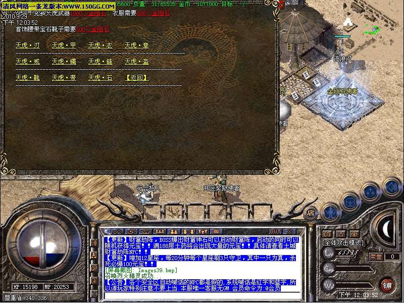 【注意】本服推出金刚石系统,每冲值1元人民币元宝将获得10个金刚石,金刚石可在土城金刚石使者处兑换装备哦!!