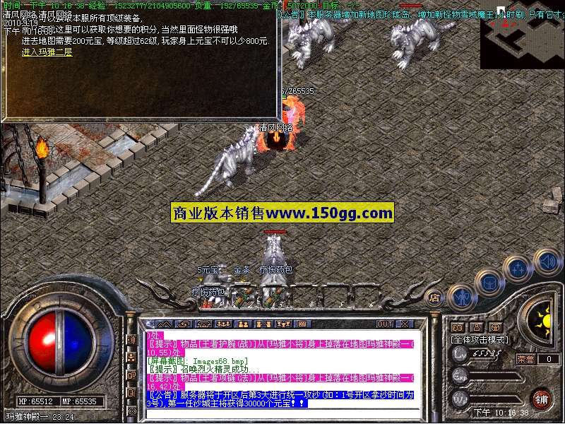7.新增“元宝神龙”刷新地点:土城药店,聚宝盆(必爆100元宝),“经验使者”刷新地点:土城书店,封魔安全区(必爆500W经验丹),每60分钟刷新一次。!