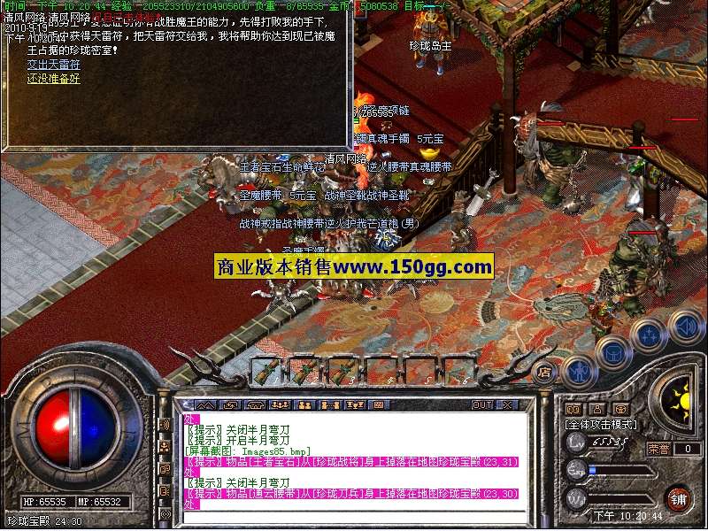 3.本服务器增加新地图珍珑岛、增加新怪物雪域魔王1小时刷,只有它才会爆出本F终极(玲珑系列)!!珍珑宝殿30分钟刷1只珍珑将军必爆3个天雷符(怪物险恶建议组队前往)