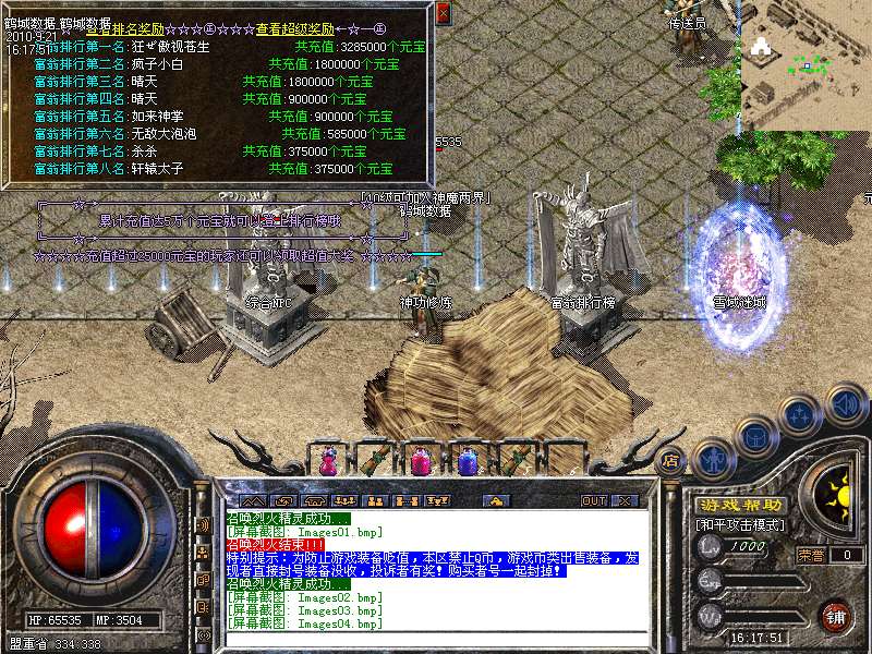 3.元宝获得方法:可打怪物直接爆出,也可打到多余的装备回收获得元宝,总之本服的元宝非常容易搞到.