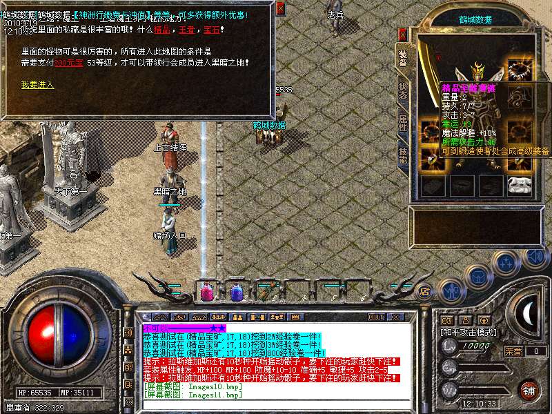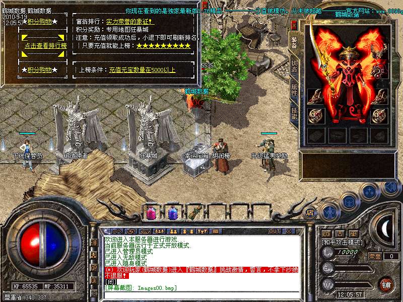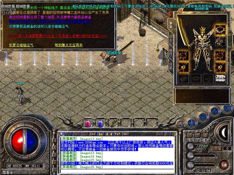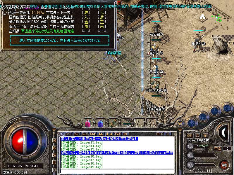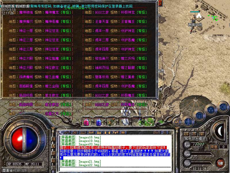 特别地图:王者天堂为打宝天堂,每天16点开放.此地图任何大小怪物都可以有机率暴出赤月类装备和精品首饰、终极武器!