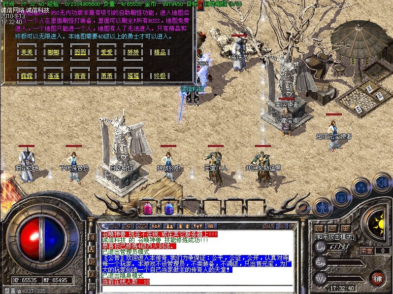 版本特色一:增加了12个专门自助刷怪的地图一个人进去打宝享受打装备服务。