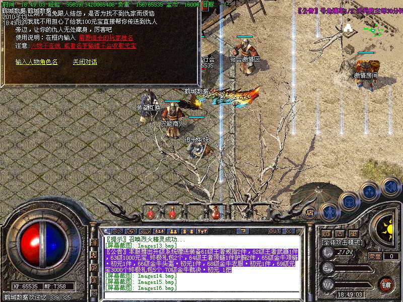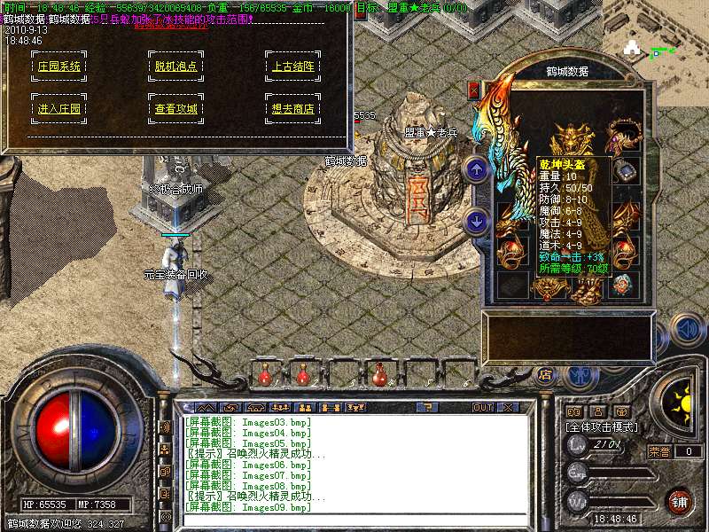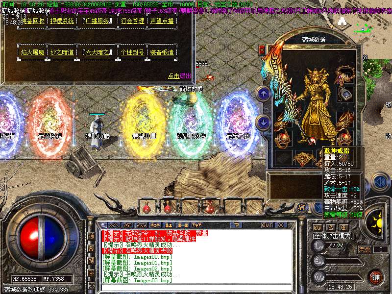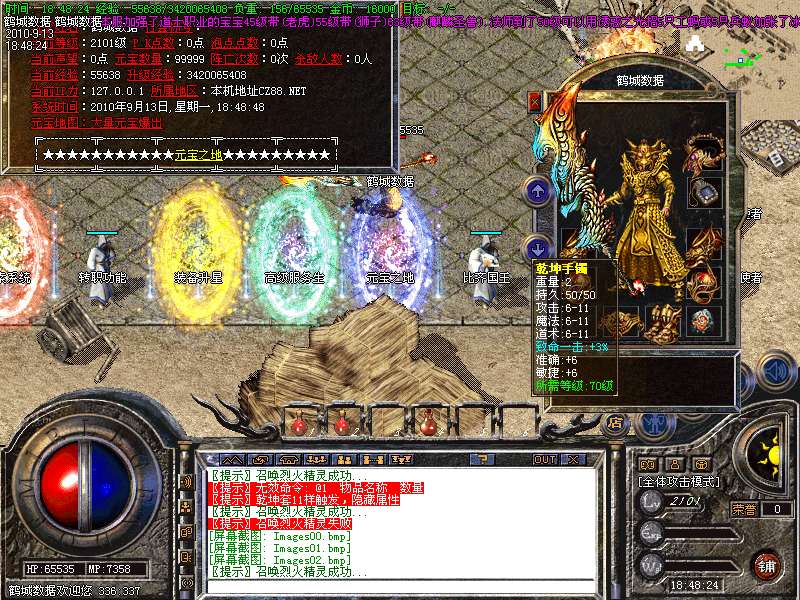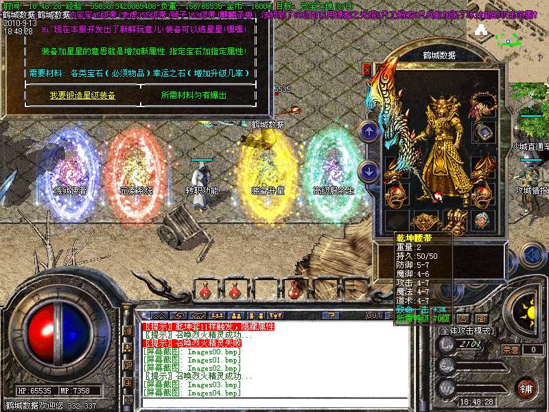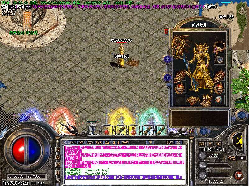1.85内挂2010年最新版本,本服在1.85的基础上添加了新地图【幽灵船-蚂蚁洞-安其拉】等新地图金牛装备元素灵魂系统!