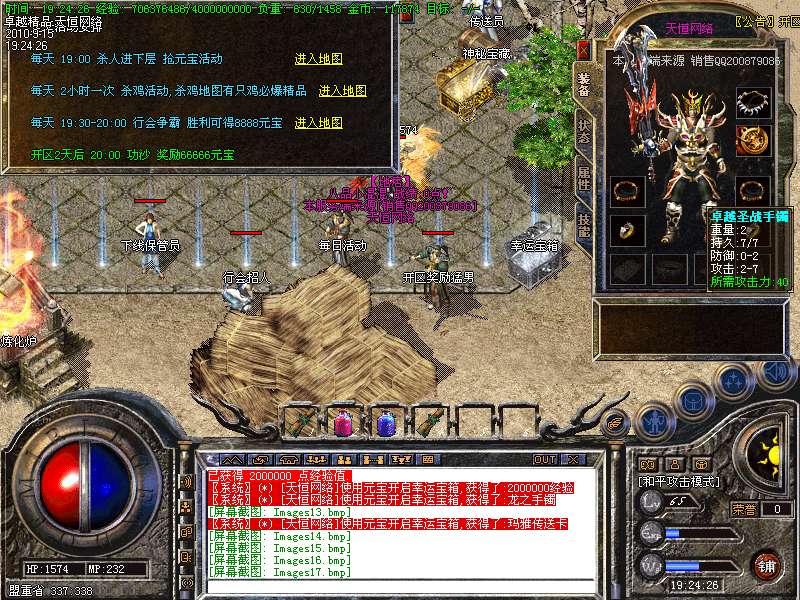 新增加特色地图,地狱之城,里面BOSS携带有本服终极装备。。 难度系数可是非常高哦,建议组队前往。。。