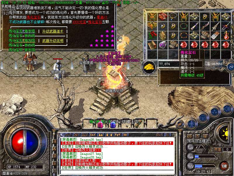 游戏介绍:服务器武器升级成功率为80% 最高升级7点,请大家自己把握,升碎了可别找管理员,黑铁矿需要在矿区挖出!
