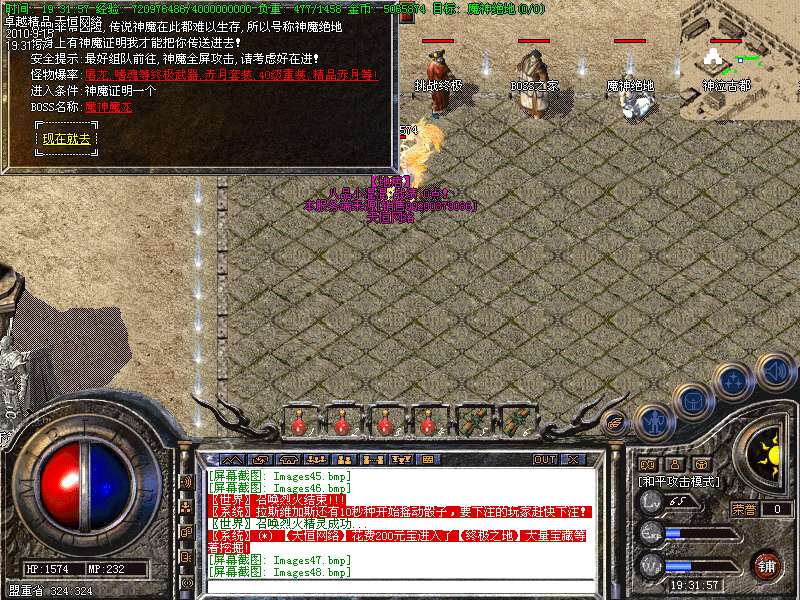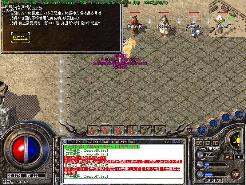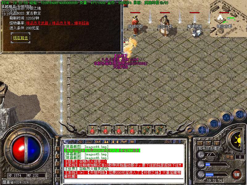 服务器高暴率BOSS为:终极魔王 终极恶魔 阎罗王 主宰魔王 神泣狂龙 复古教主 神泣教主 等等...当你发现的时候一定不要放过它!