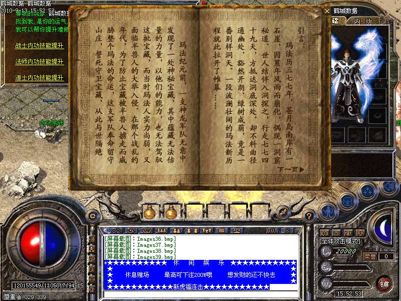 *★★★★★★★★★★ 人 物 系 统 ★★★★★★★★★★★★ 1. 人物等级200级封顶 2.内功等级255级封顶 ★★ 3. 内功技能等级提升,点击土城内功提升NPC,不必自已修炼 ★★★★★★★★★★★★新虎福连击★★★★★★★★★★★