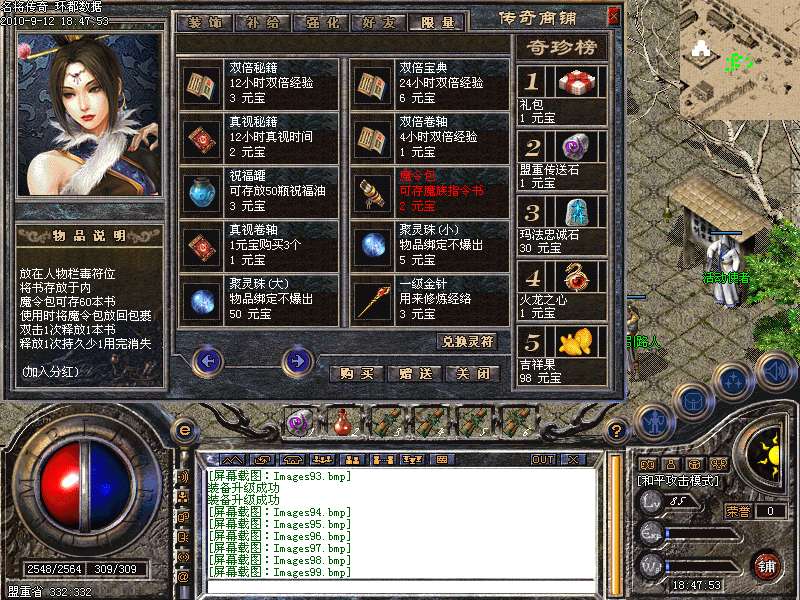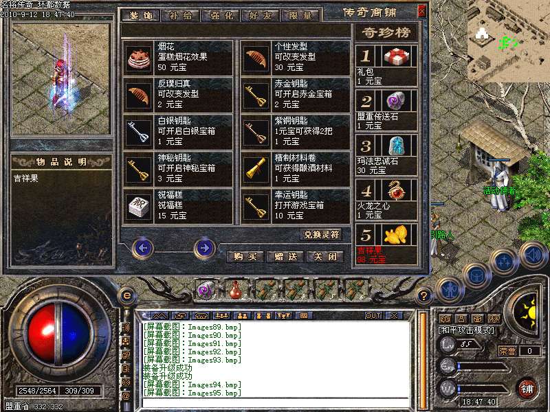 <元宝升级>:元宝升级:雷炎,卧龙挖经验,宝箱,聚灵珠,富贵兽,雪域地图收费地图,铺子买 吉祥果去富贵兽那里交吉祥果 ,然后使用金钱鱼币抽奖,庆典殿堂换取超额大礼,灵符自动修炼