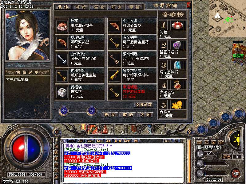 本服金币比较值钱,请在打怪时随手捡起,用途也很大,一般大BOSS都有几率爆出金条