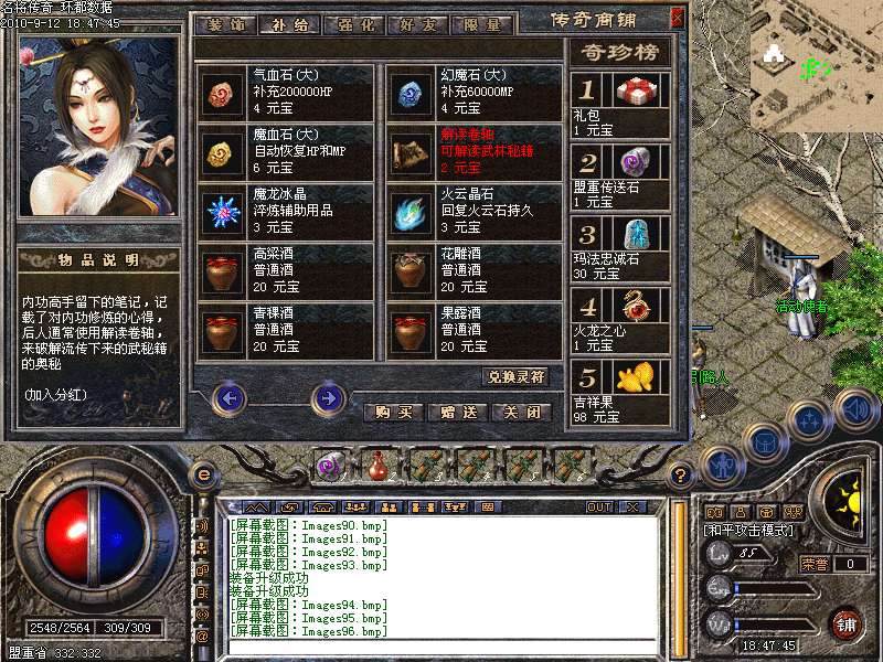 <内功升级>:雪域,地下,庆典殿堂换取超额大礼雷炎,藏经阁挖精元丹,解读武林秘籍,挖取人形怪获得超级灵虚丹,灵符仙子自动修炼。