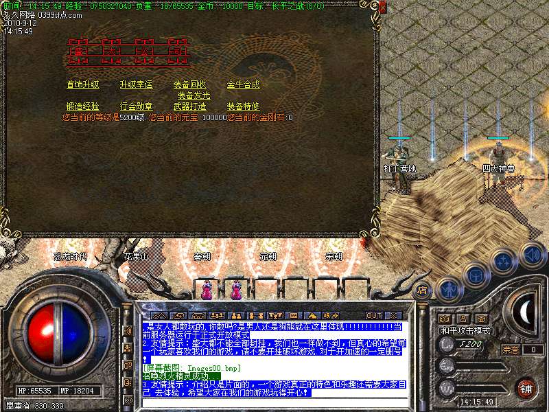 本服所有装备都是无限狂爆,开天斩,流星火雨,飓风破,护体神盾,为你PK增光彩,分秒都在激情 元宝1:5000.点卡多20%网银多40%