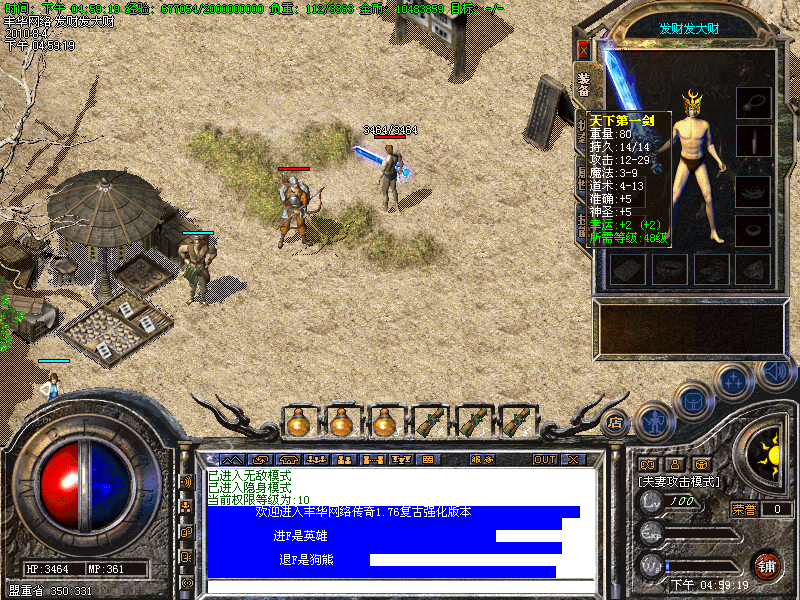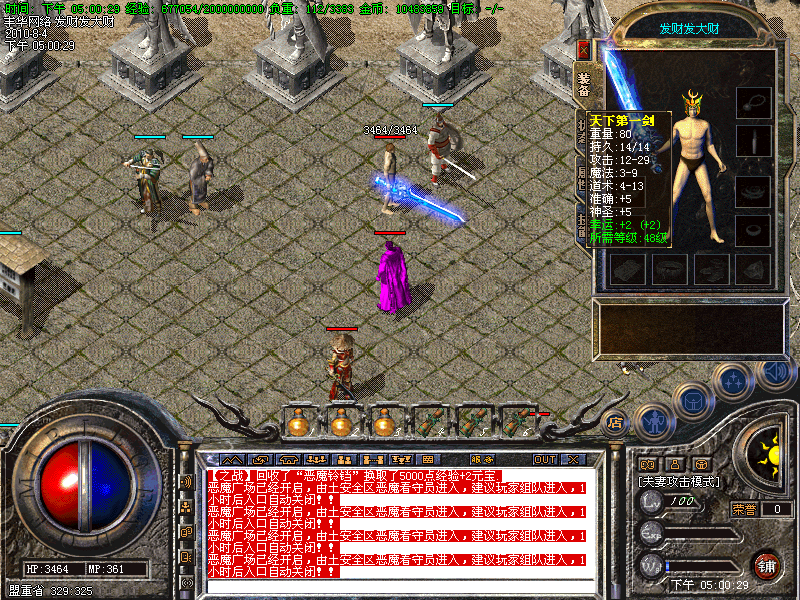 本游戏天下第一剑佩带后可以触发新技能,武林挣霸,不过此武器不允许修理,而且死亡必掉,请细心保管