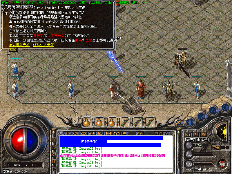 本服务器幻境5为双倍经验地图,适合战士升级;牛魔7刷怪比较多适合法师道士组队升级。