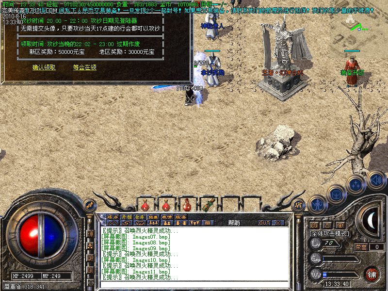 【沙城奖励】 拿沙奖励可在NPC处领取获得