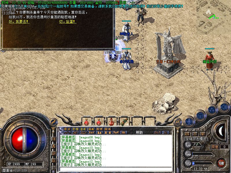 【积分兑换】 打怪获得的积分可以在NPC处兑换高等级装备.
