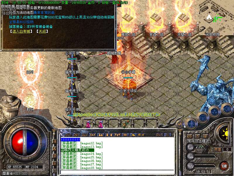 20.【特别地图】恶魔世界此地图大小BOSS刷新均比较快,适当结伴边抽烟边打宝,升级超几吧快。烟花教主每60分钟刷新