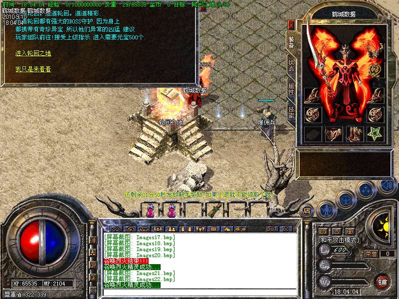19.【特别地图】六道轮回,共七层,每进一层难度增加,闯过六层可以领取200元宝奖励,或者进入终极轮回之地挑战终极BOSS,此地图暴率非常高!
