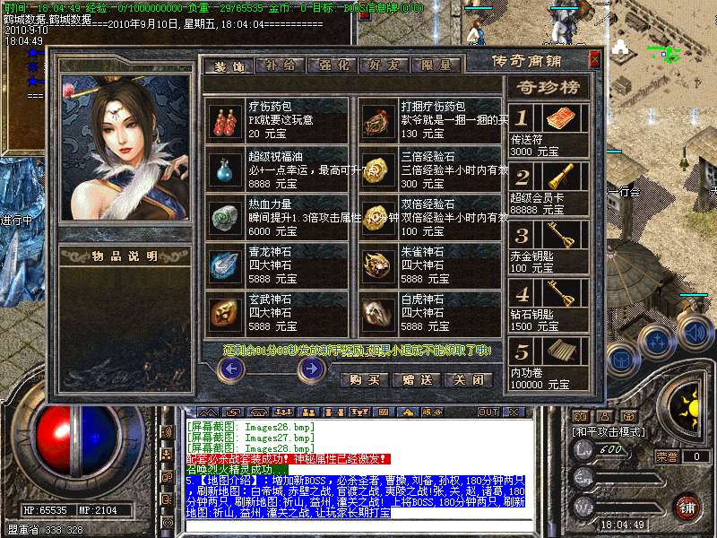 13.【游戏介绍】35级技能,以及狮子吼,无极真气,灭天火此类技能,需要在尸王店获得,每10分钟刷新一次!