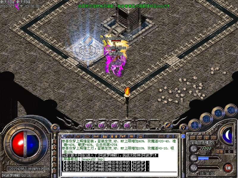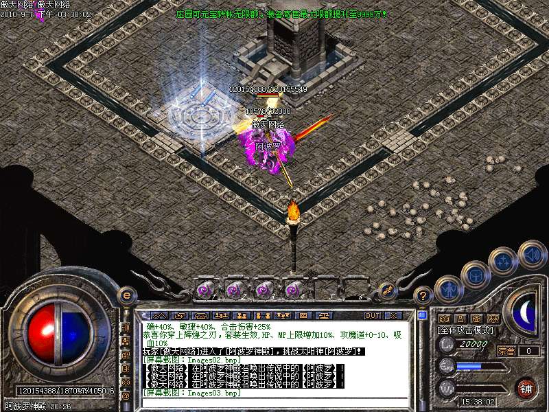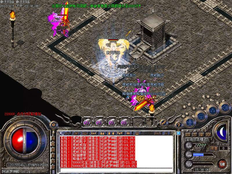 恶魔攻城:每天下午5点,各城市安全区刷1只阿波罗恶魔,杀死后一定机率爆终极装备