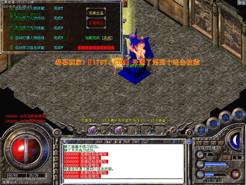 激情闭关:每秒4000万经验200万内功经验!(可PK区域,可挂到本服顶级200级,内功255级)