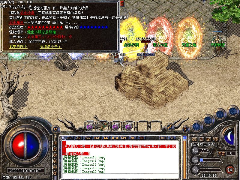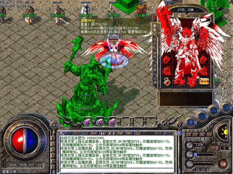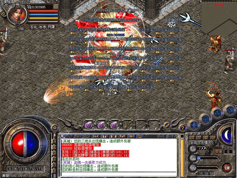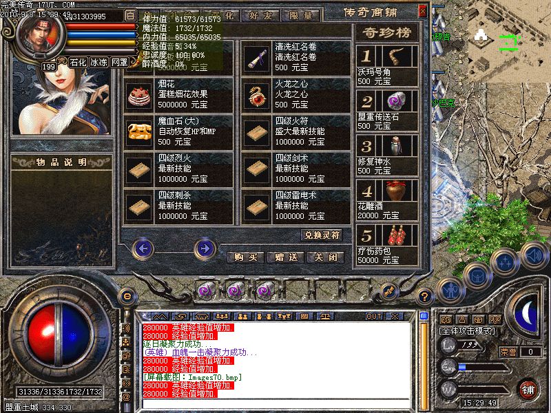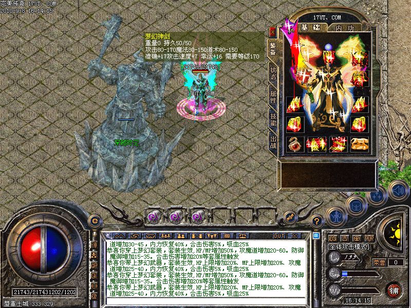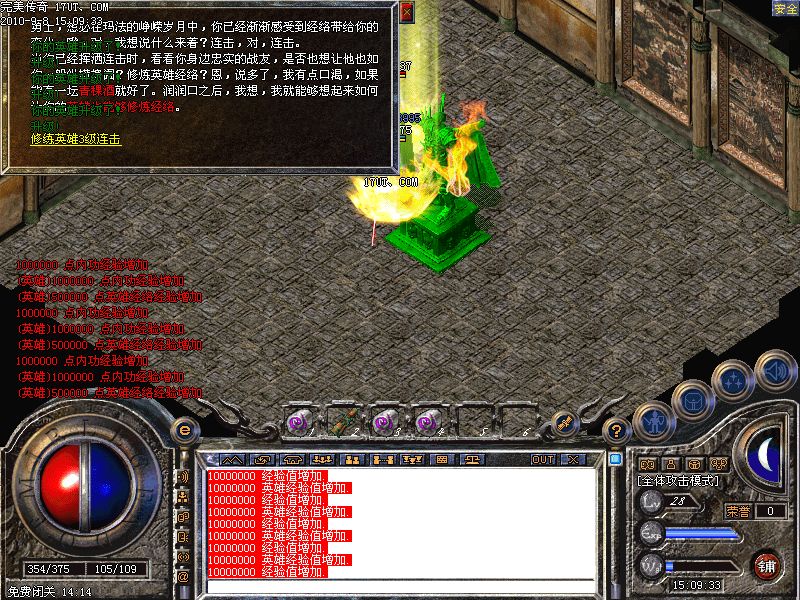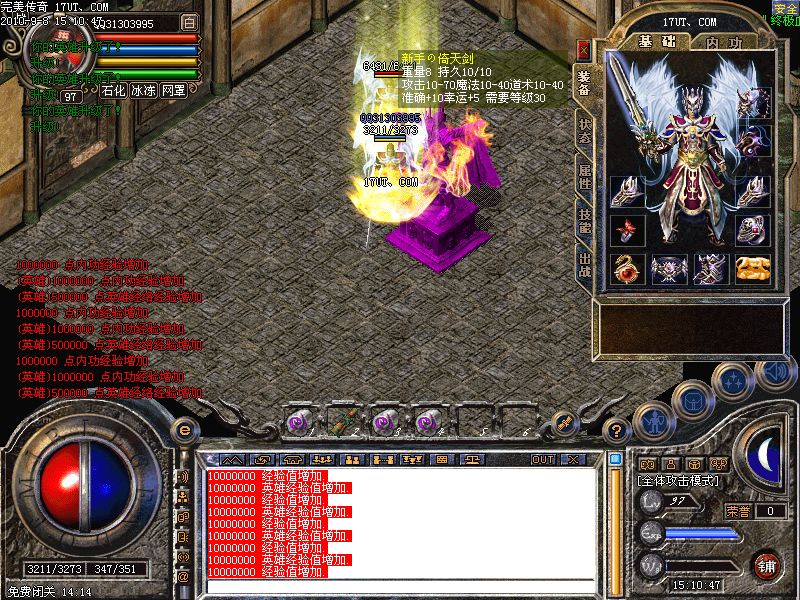 激情殿堂:每秒5000万经验250万内功经验!(可PK区域,可挂到本服顶级200级,内功255级)