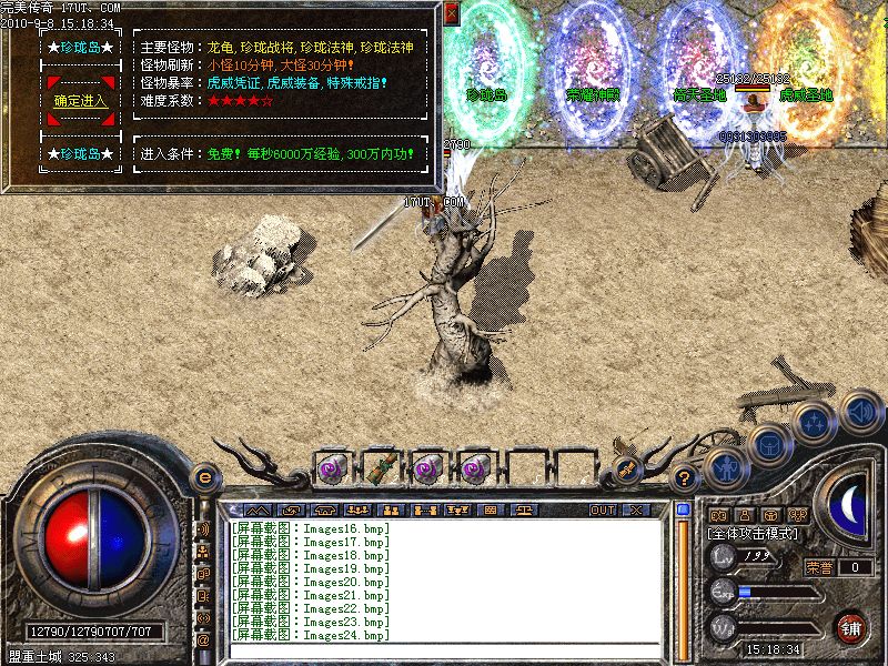 珍 珑 岛:每秒6000万经验300万内功经验!(可PK区域,可挂到本服顶级200级,内功255级)