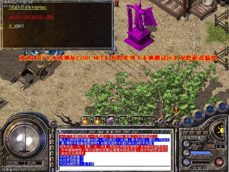 - ☉ V8引擎传奇端游【荒域专属单职业九大陆】Win一键端+配套补丁网站+架设教程