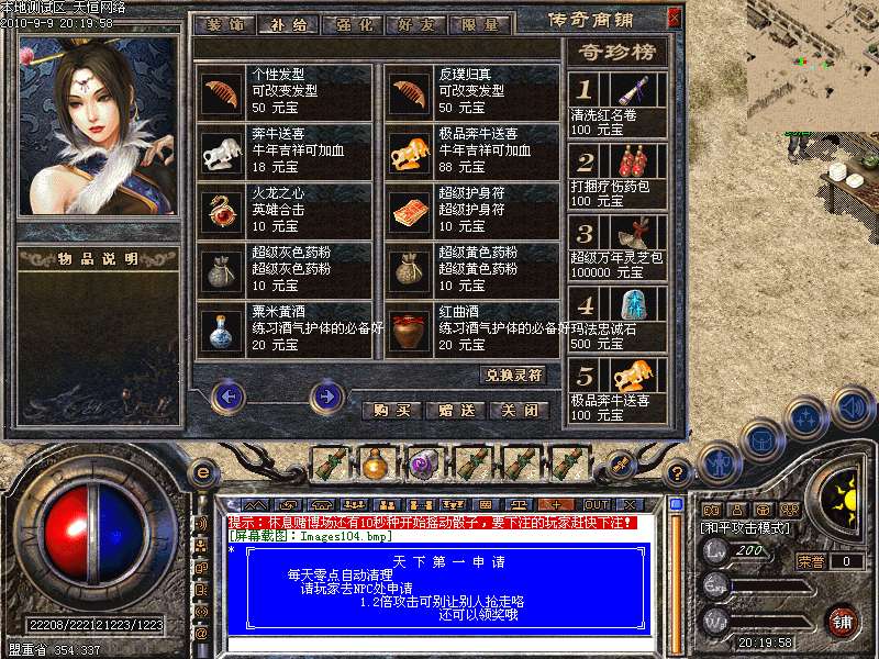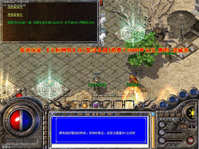 ━═☆天下第一:每天下午3点,土城左上角进入,最后一个离开获得"天下第一剑"和500万元宝━═☆