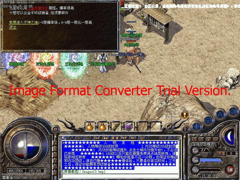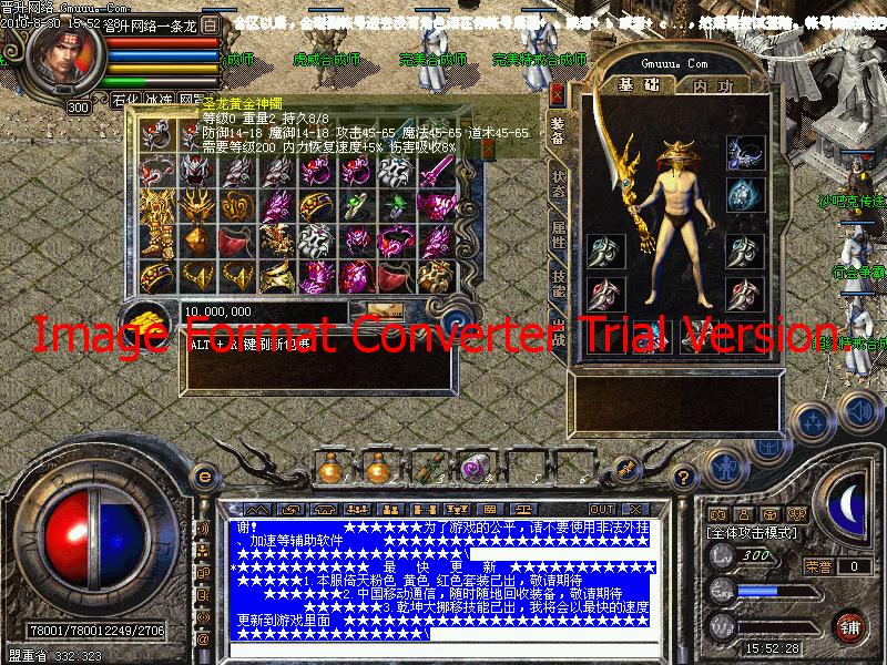 5.不花一分钱,也保证你等级和内功顶级,只要是你肯花时间,三天之后,保证你能拥有顶级装备