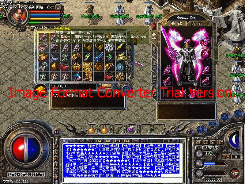 4.【虎威套装】较为好爆,亦可合成和回收,PK打怪的必备装备