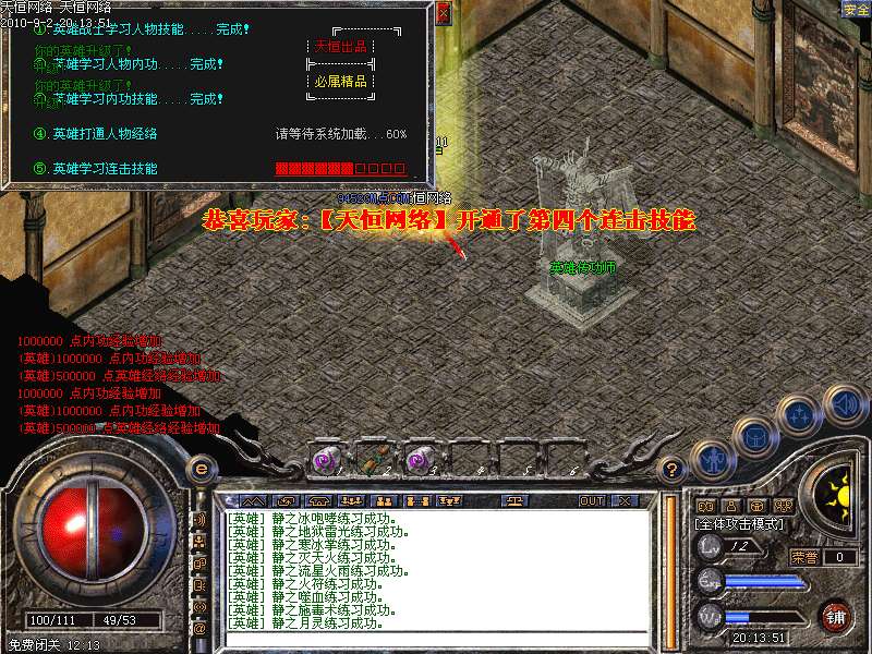 免费闭关:每秒1000万经验100万内功经验!(安全区域,可挂到本服顶级200级,内功255级)