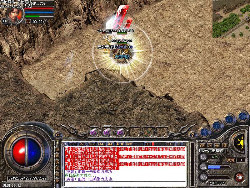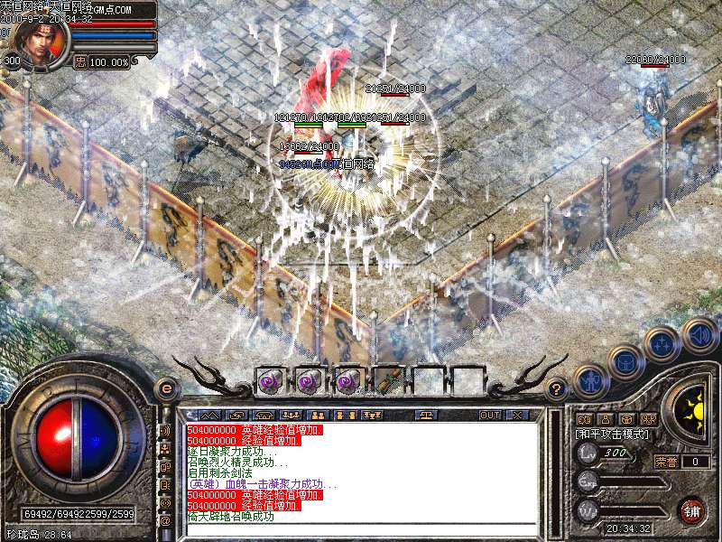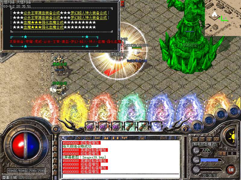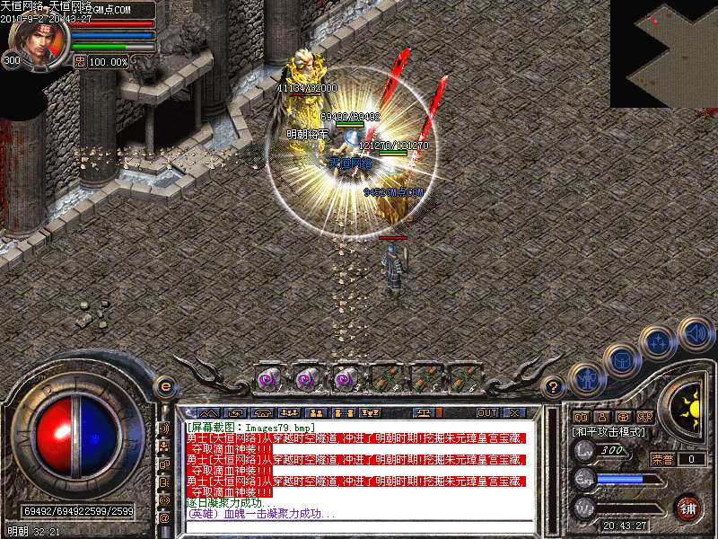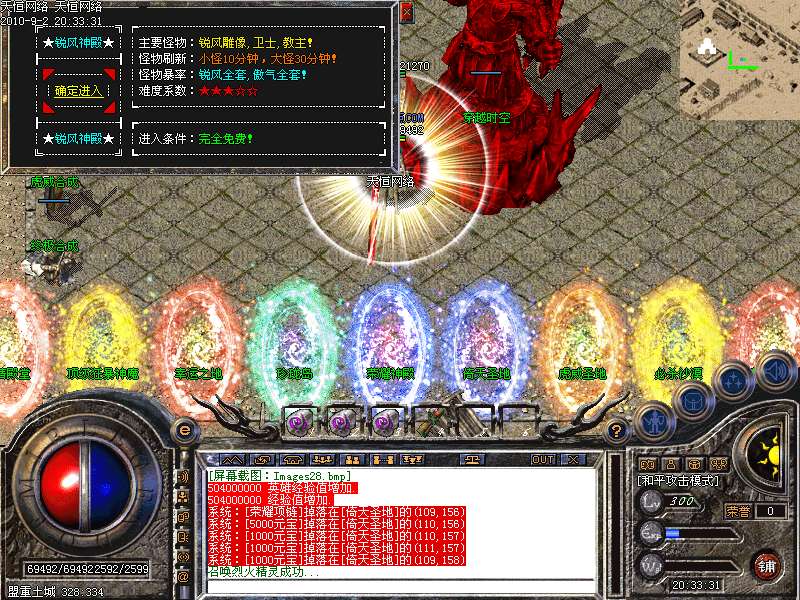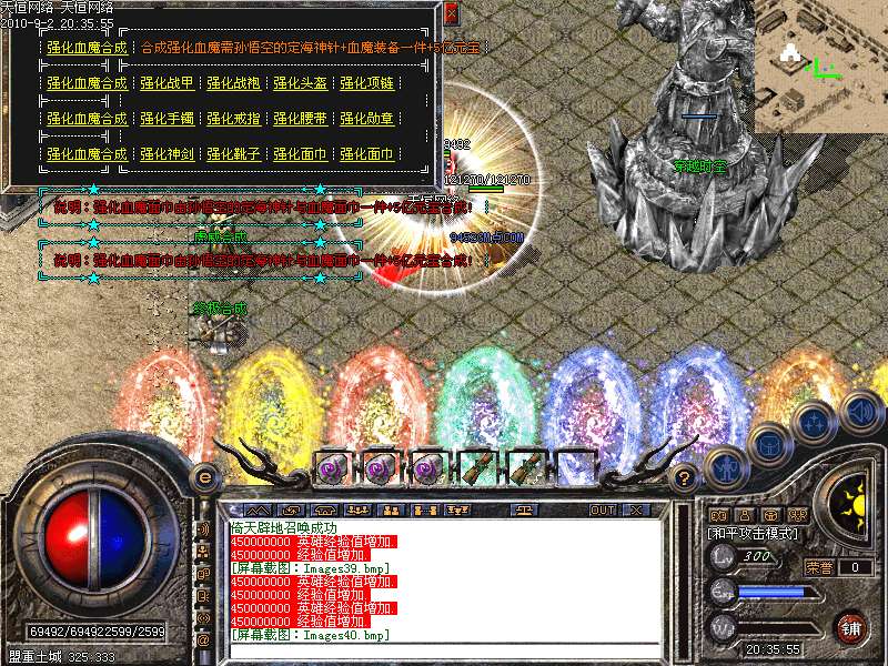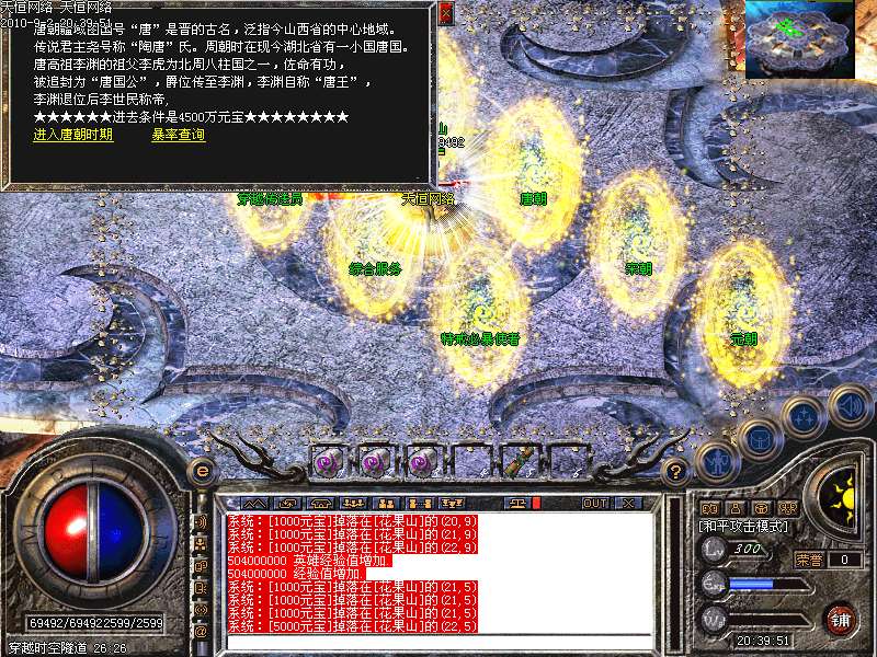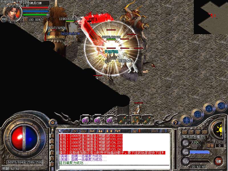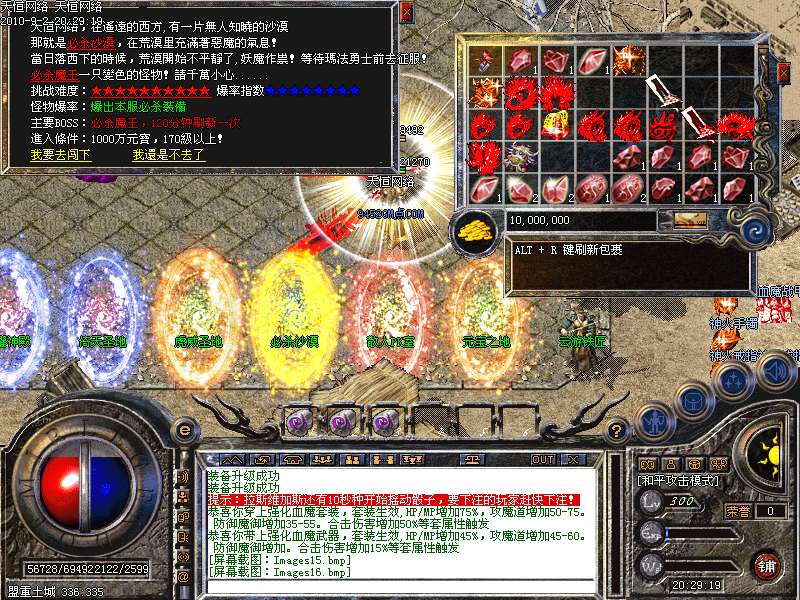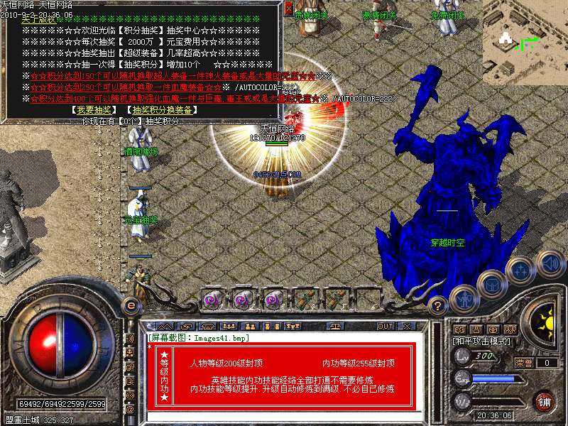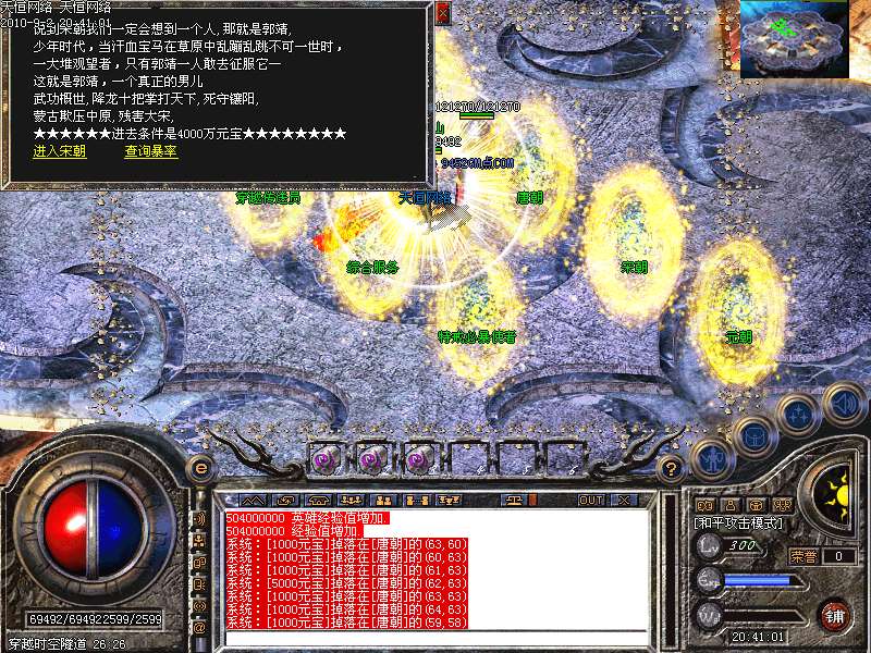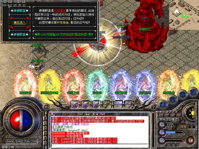 激 情殿堂:每秒1200万经验200万内功经验!(可PK区域,可挂到本服顶级200级,内功255级)