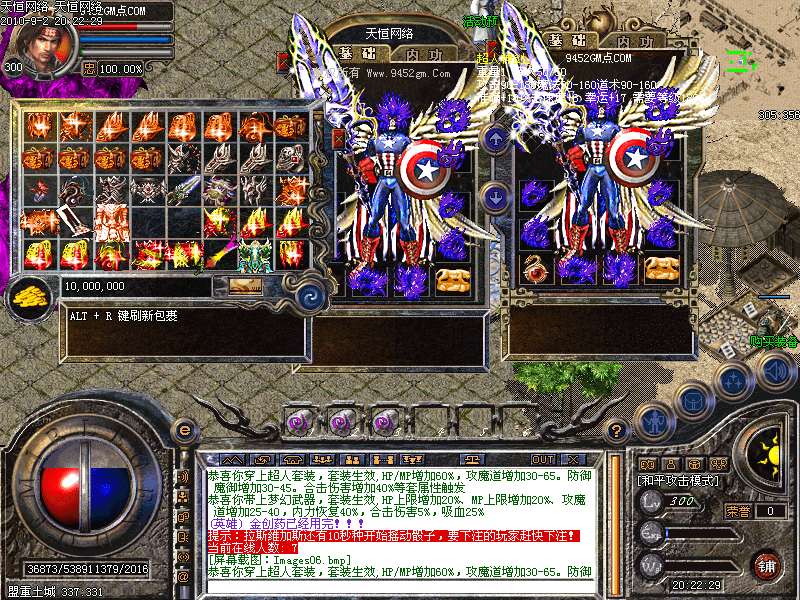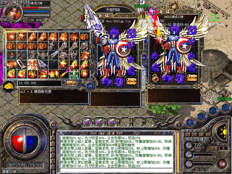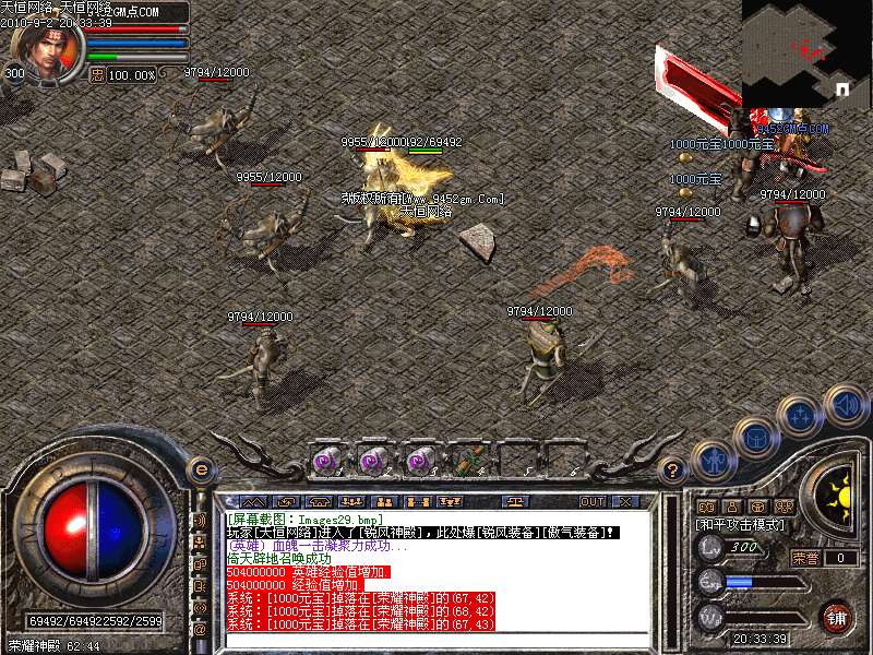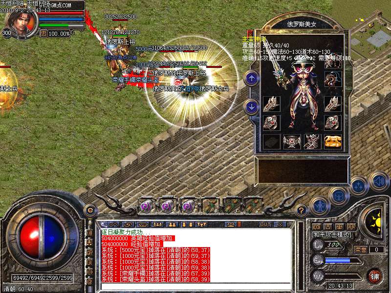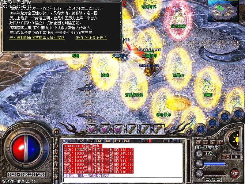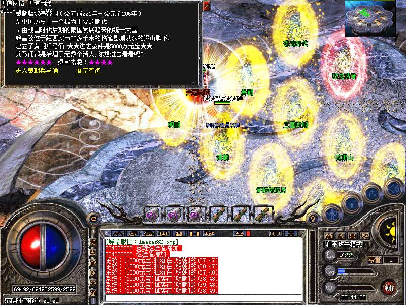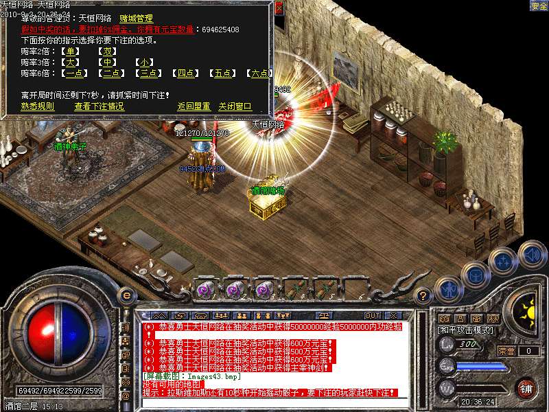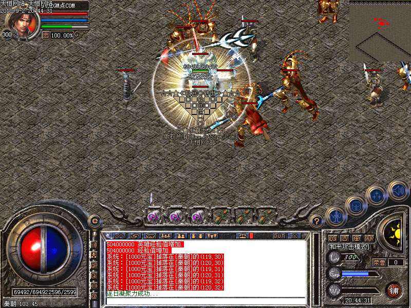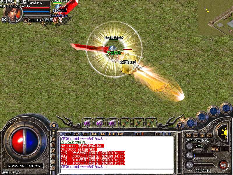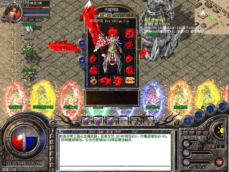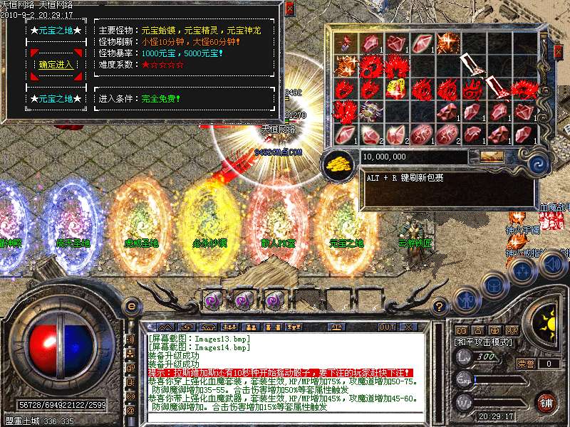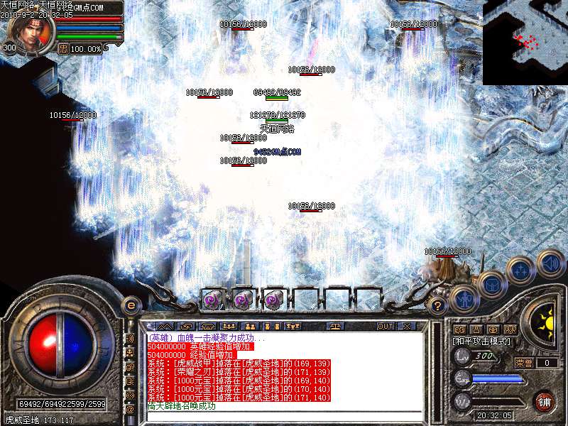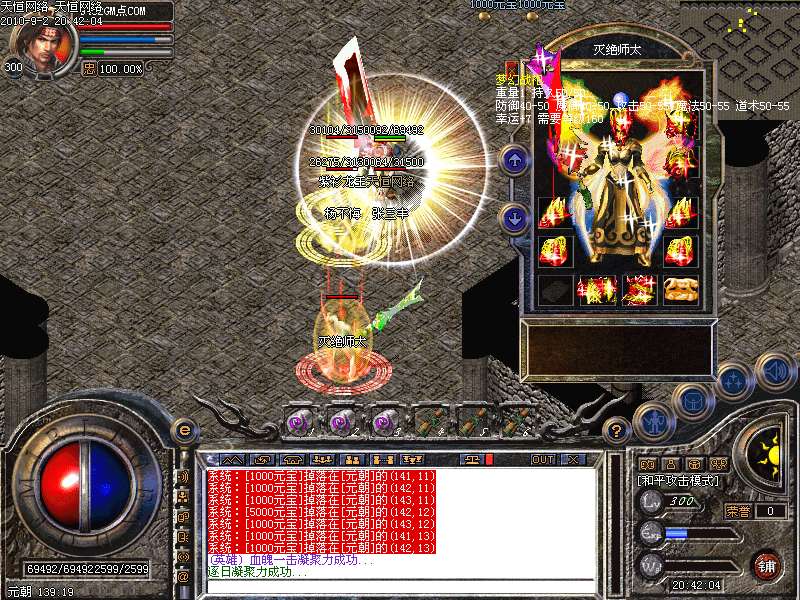 激 情殿堂:每秒1200万经验200万内功经验!(可PK区域,可挂到本服顶级200级,内功255级)