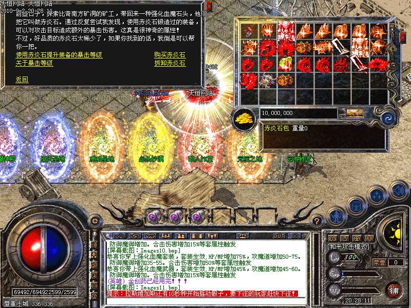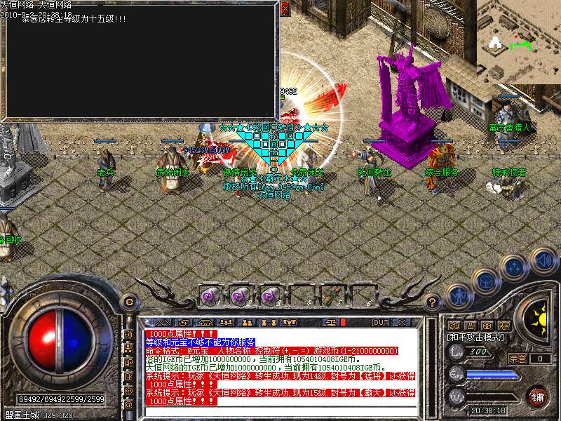 ①.天下第一:每职业等级第一名随时在土城左下角申请,可获得1.2倍攻魔道!