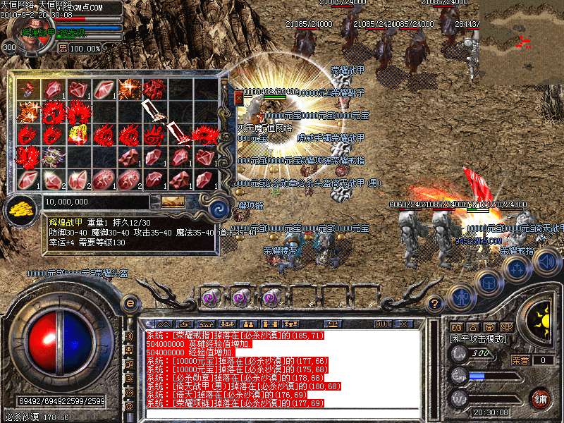 ④.必爆虎威:每天晚上7点庄园宫庭刷一虎威必爆怪,将爆一套虎威装备!