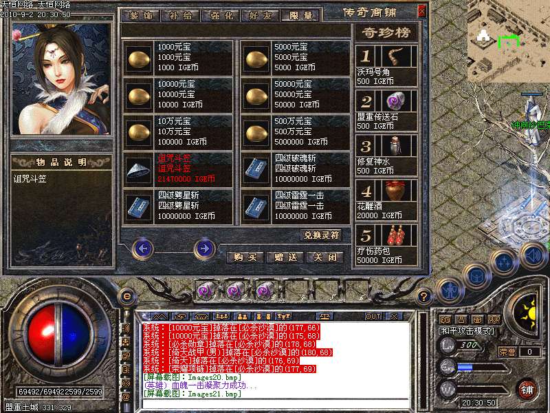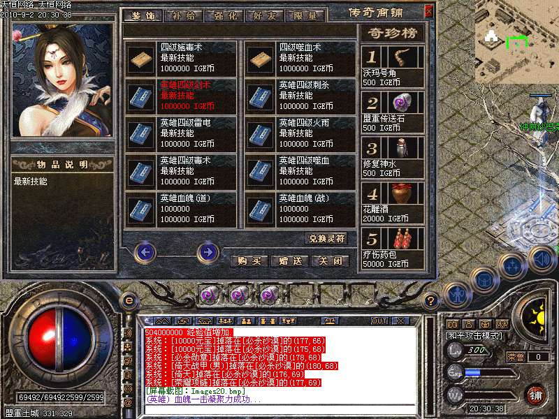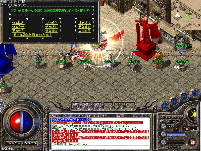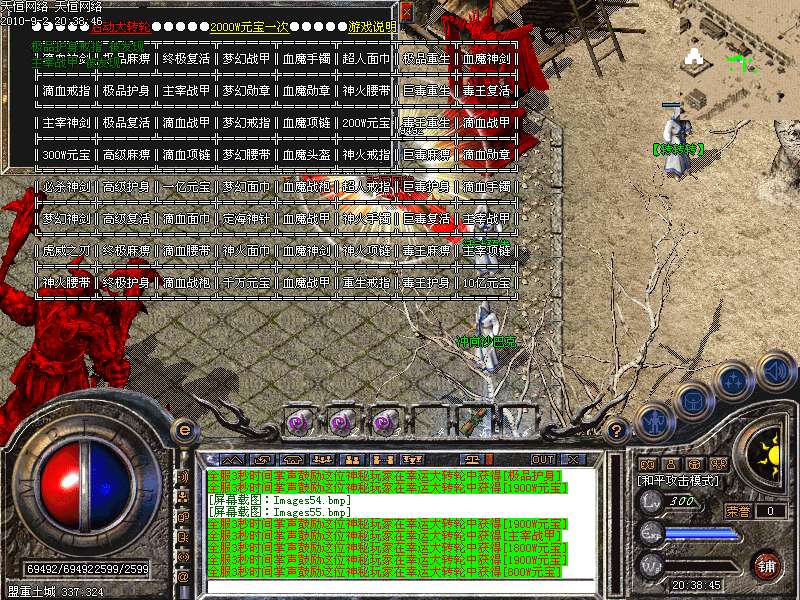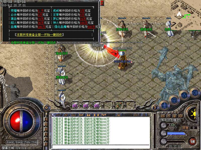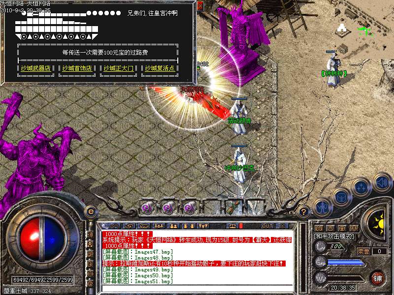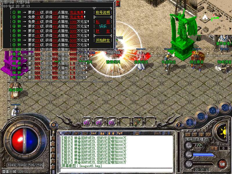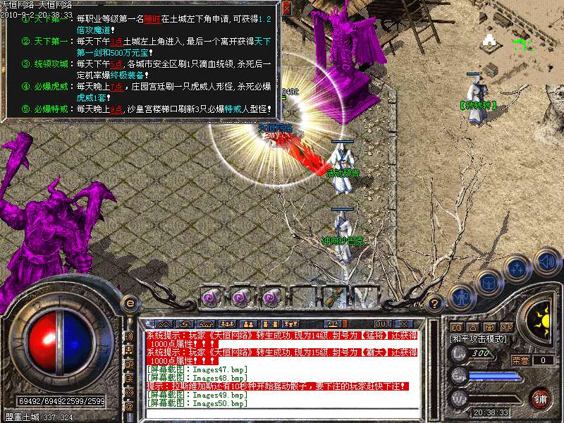 ③.统领攻城:每天下午5点,各城市安全区刷1只滴血统领,杀死后一定机率爆终极装备!