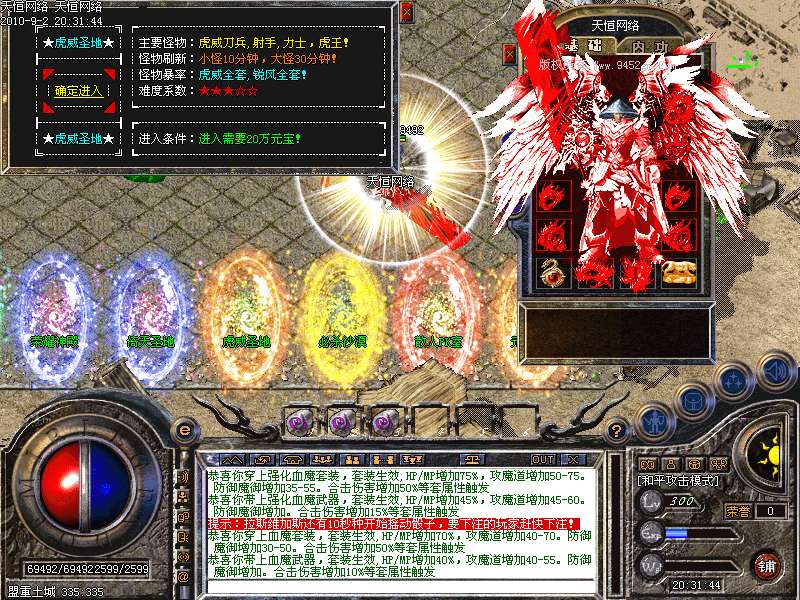 终极特戒,属性超强,终极特戒1.4倍攻击加30%HP/MP,高级特戒1.2倍攻击加20%HP/MP,极品特戒1.1倍攻击加10%HP/MP。虎威RMB玩家5元搞定超爽装备!非RMB玩家1天打不到1套你可以退F!