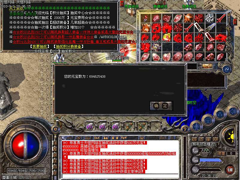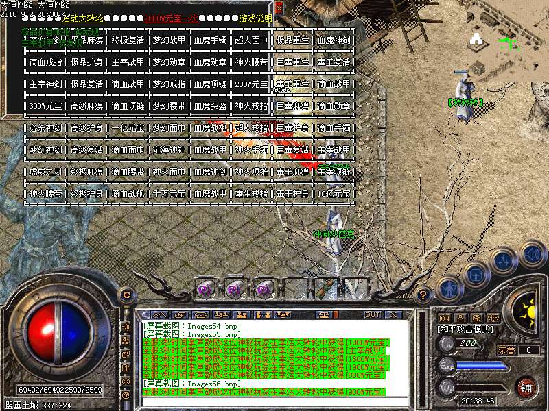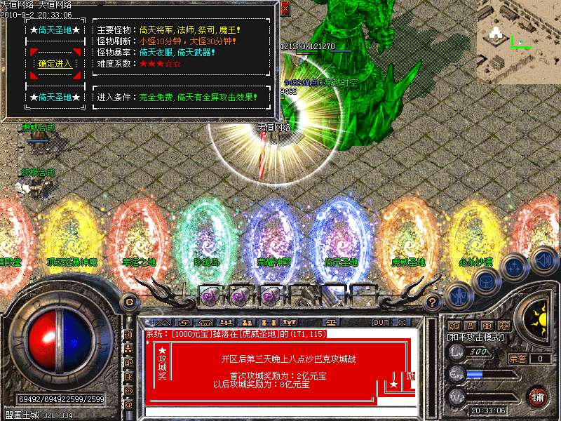 ②.天下第一:每天下午3点,土城左上角进入,最后一个离开获得"天下第一剑"和500万元宝!