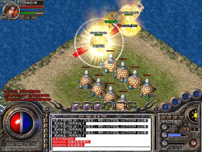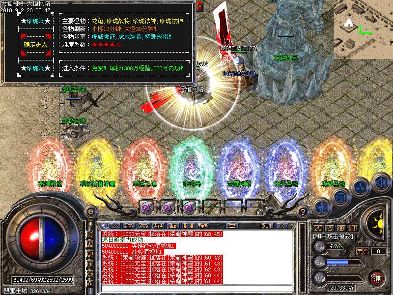 珍 珑 岛:每秒1300万经验200万内功经验!(可PK区域,可挂到本服顶级200级,内功255级)